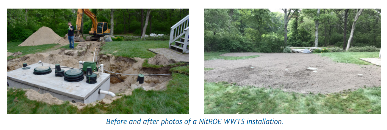 Back in June, a new alternative septic system called the NitROE Waste Water Treatment System (NitROE WWTS) received a permit for “provisional approval” from the Massachusetts Department of Environmental Protection. This permit codifies a 40% improvement over all previously permitted Innovative/Alternative septic systems – and that is only the beginning! We believe this system will ultimately achieve a 90 to 95% reduction in nitrogen flowing into our groundwater, thus performing equally to or better than most municipal treatment systems.