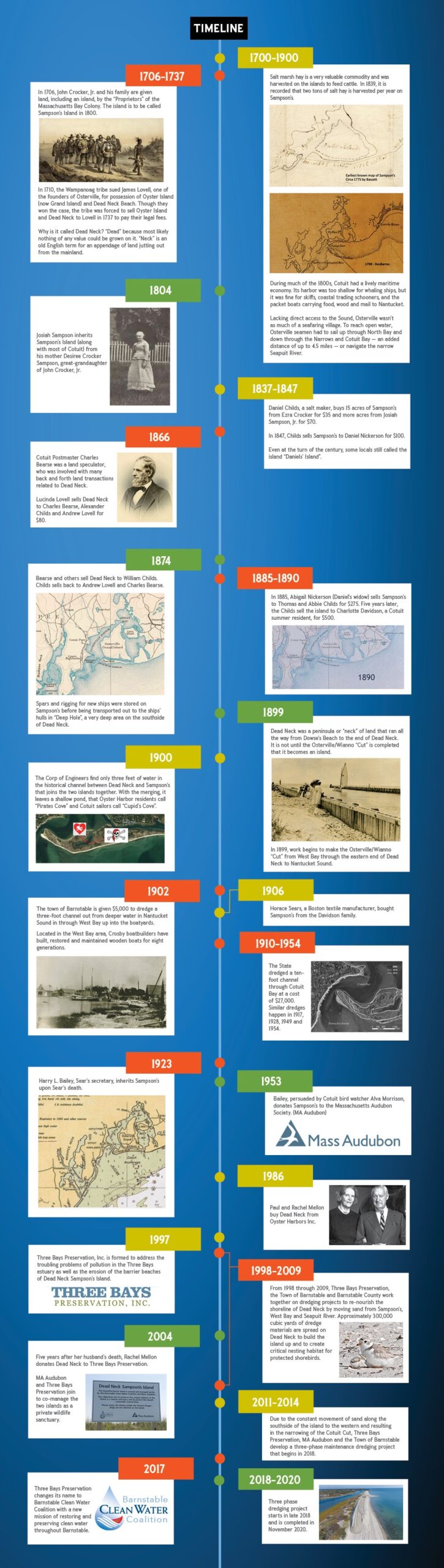 As you read through the timeline, you will note how important the islands were for commerce including salt marsh hay farming, salt production and boat building. Maritime travel was signifi cant both for economic and recreational purposes. While the controversial Osterville/Wianno “Cut” provided easier access to Nantucket Sound from Osterville and improvements for the east end of the island, it changed the physical dynamics on the islands immensely and resulted in multiple dredge projects over the more than 120 years since the cut was made.